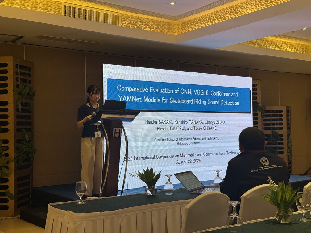 - Haruka Sakaki, Kenshiro Tanaka, Chenyu Zhao, Hiroshi Tsutsui, Takeo Ohgane, “Comparative Evaluation of CNN, VGG16, Conformer, and YAMNet Models for Skateboard Riding Sound Detection,” Proceedings of International Symposium on Multimedia and Communication Technology (ISMAC), Aug. 2025.
