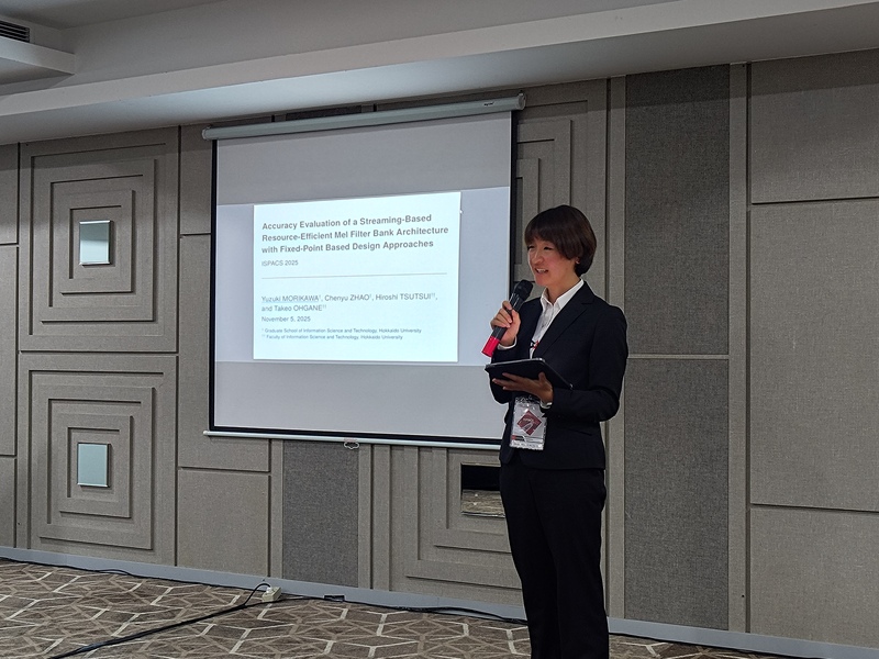 - Yuzuki Morikawa, Chenyu Zhao, Hiroshi Tsutsui, Takeo Ohgane, “Accuracy Evaluation of a Streaming-Based Resource-Efficient Mel Filter Bank Architecture with Fixed-Point Based Design Approaches,” Proceedings of International Symposium on Intelligent Signal Processing and Communication Systems (ISPACS), Nov. 2025.